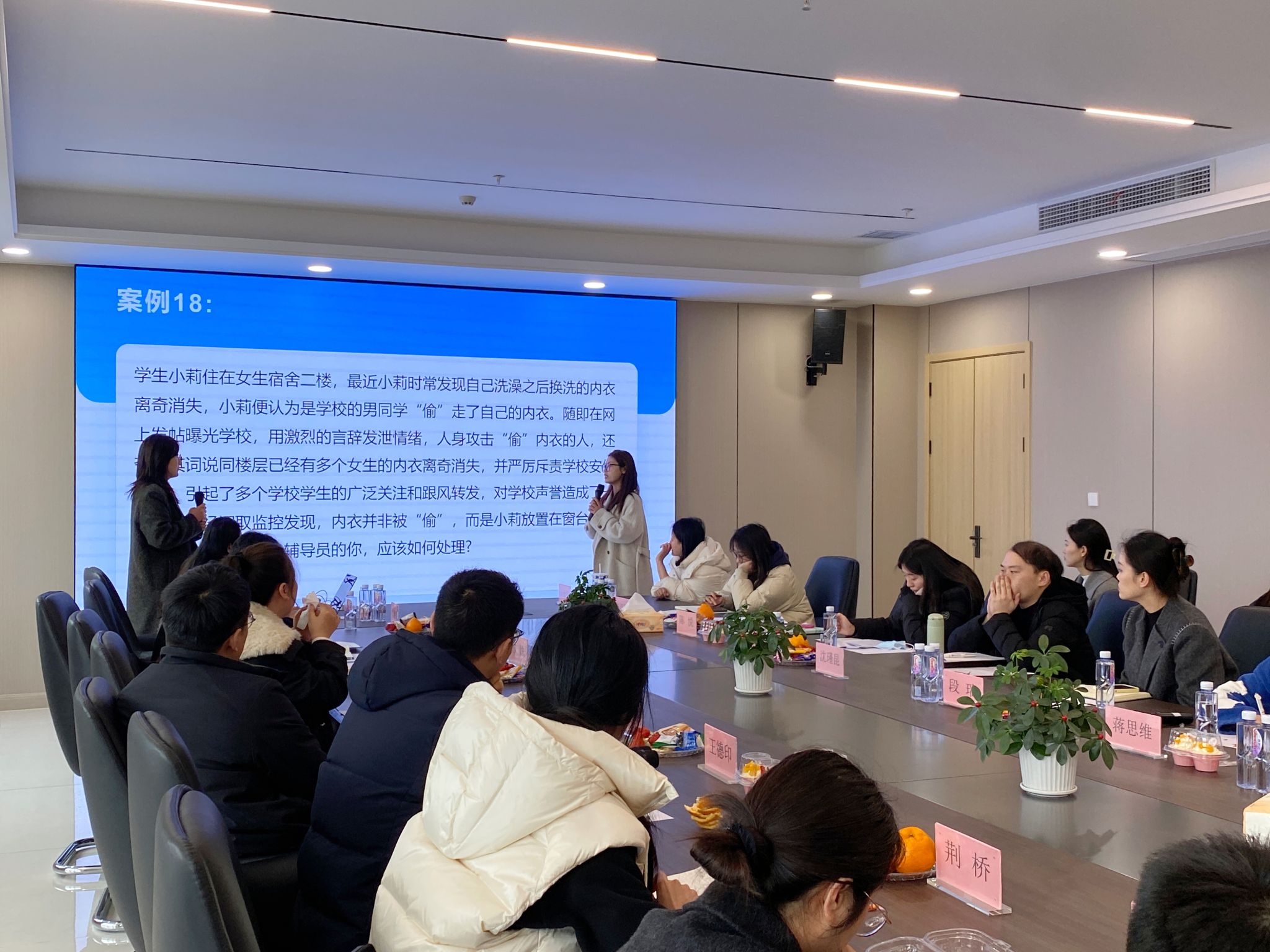 演练结束后,蒋思维老师以及段瑞老师分别进行点评指导。段瑞强调“案例破解需紧扣学生成长规律,兼顾法理情统一”;蒋思维建议“从日常工作的细微处入手,挖掘育人关键点,注重实践与理论相结合”。现场讨论热烈,为辅导员提升案例分析的科学性与实效性提供了宝贵思路。