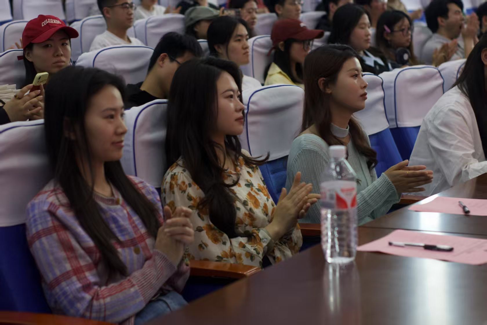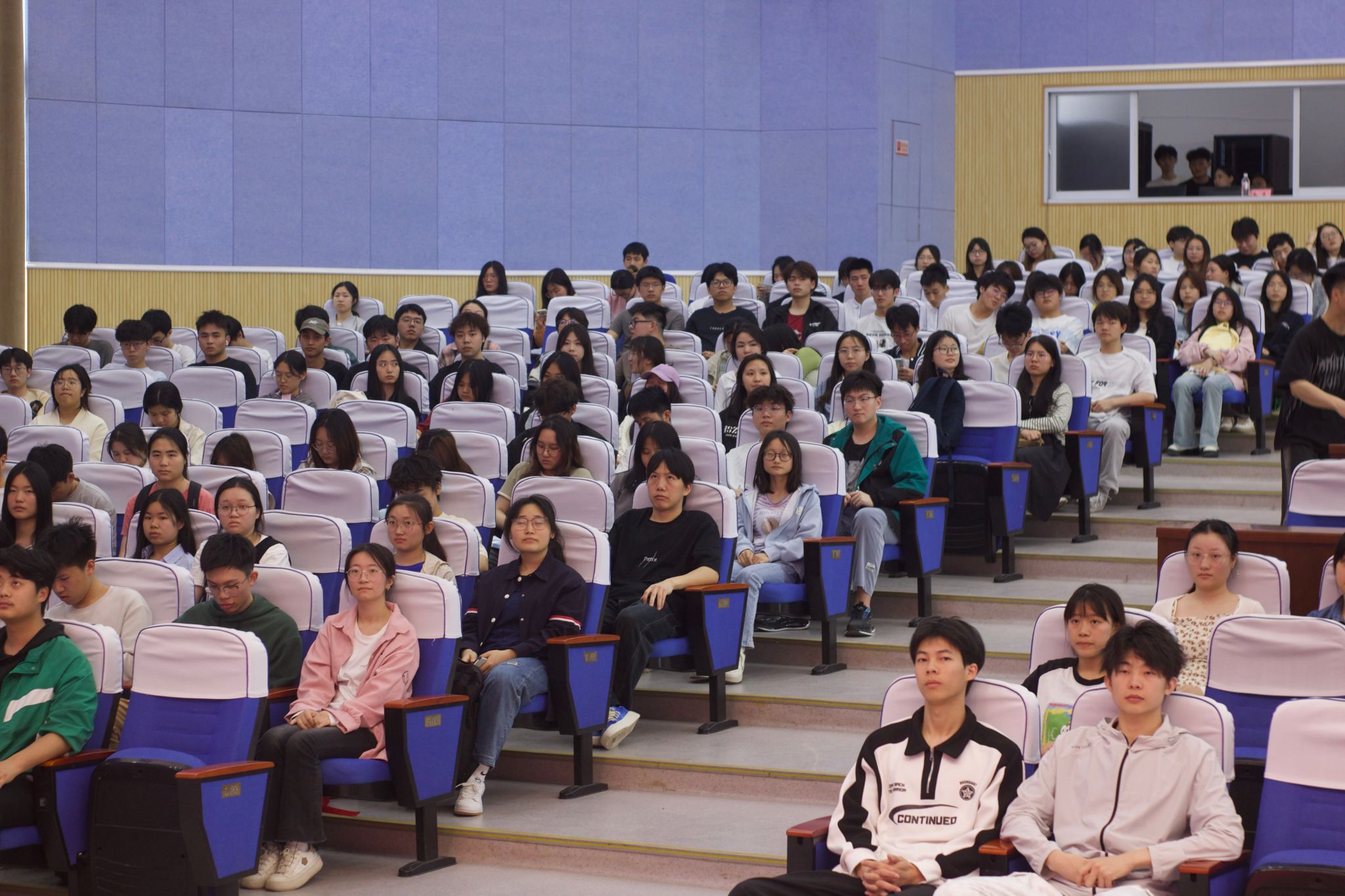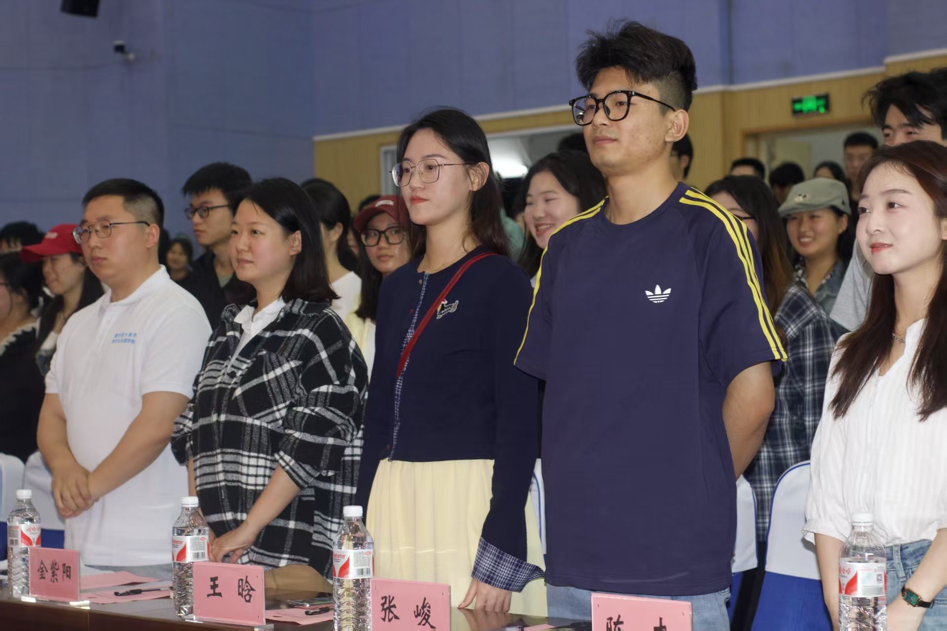 学生会统筹全流程保障工作,从场地布置到流程把控,三十余名工作人员组成签到组、物资组、摄影组协同配合。仪式尾声的集体合影中,手持加油手幅的方阵展现出昂扬斗志。