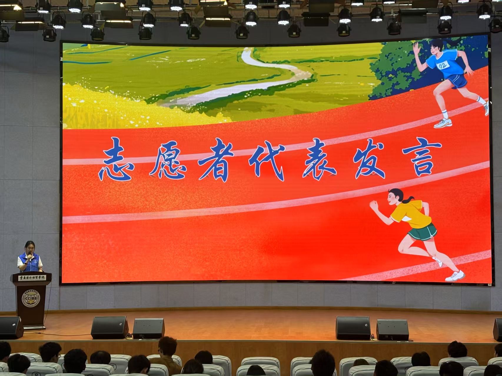 "作为城治学子,我们将以汗水浇灌梦想,用实力证明自己,在赛场上为学院争得荣耀!"运动员代表邱杰的宣言铿锵有力。志愿者代表阳娴身着马甲郑重承诺:"我们会全力做好后勤保障,让运动员们安心比赛!"现场随即响起热烈掌声,百余名运动员在黄杰老师宣读名单时依次起身致意。