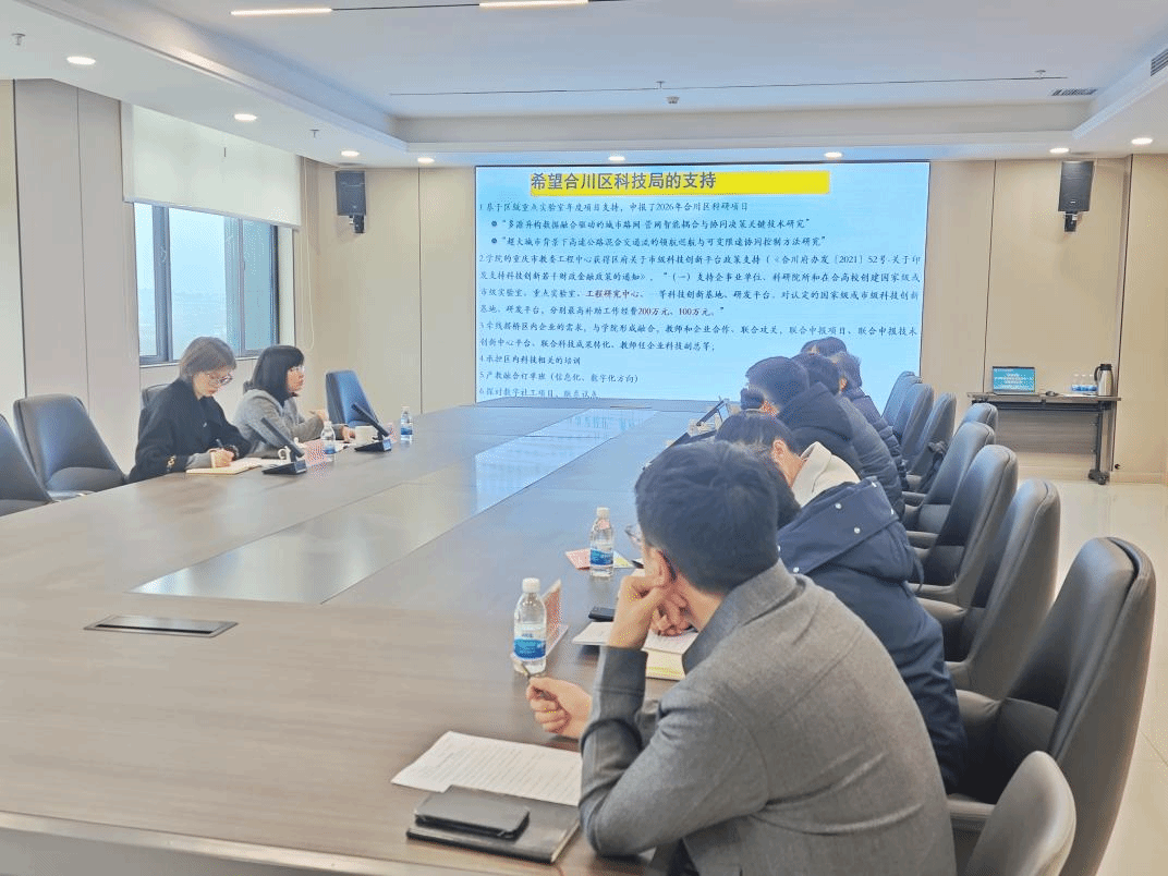 随后,双方进入深入交流研讨环节。合川区科技局结合区域科技创新发展需求,围绕学院科研项目申报、平台建设、产教融合等方面,逐一明确具体支持举措与合作方向。