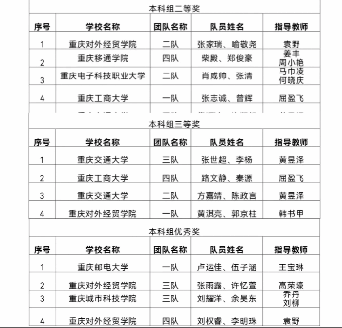 同时,重庆超大城市数字化治理学院区块链工程系主任袁野老师、区块链工程系专任教师高荣壕老师以及数学与计算机学院韩书甲老师,荣获市级优秀指导教师称号,学校荣获优秀组织奖。