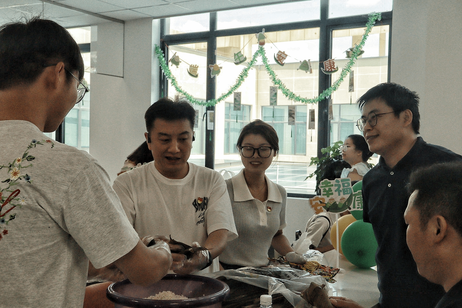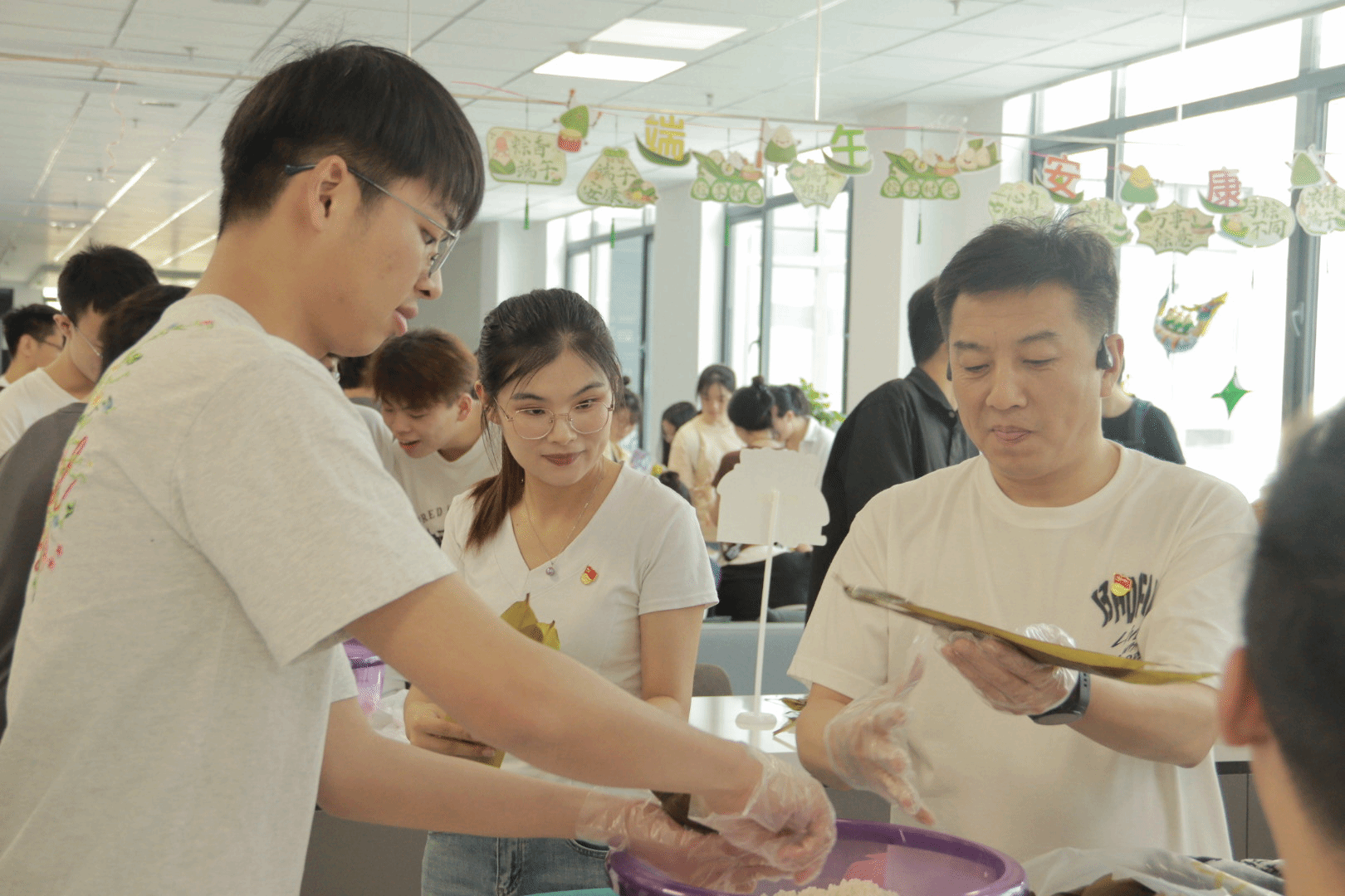 粽叶舞动,师生同乐承古韵。5月29日,活动场地欢声笑语不绝于耳。副校长李川、党总支书记任伟、副院长侯伯、办公室主任王杰、团总支书记段瑞以及各辅导员老师们,纷纷脱下平日工作的严谨,与学生一同围聚,共享节日之乐。