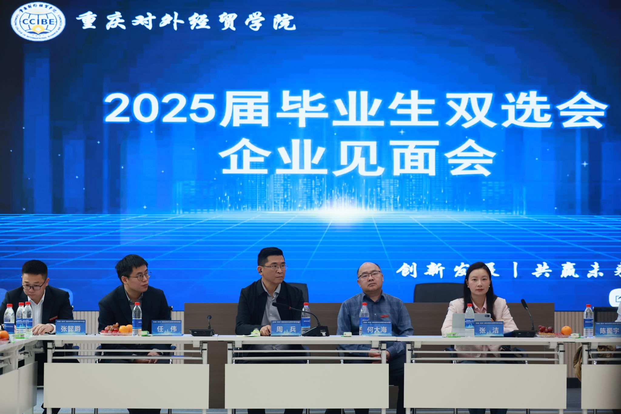 本次双选会以数字化技术贯穿就业服务全过程,创新设置“简历优化门诊”“AI面试模拟”等特色功能区,通过“企业微信精准推送+辅导员全程动员”实现应届生触达率100%。活动同期举办“数字人才共育战略座谈会”,重庆对外经贸学院党委书记何大海系统解读“产教融合、服务地方”的育人体系。市大数据局融合发展处二级调研员张洁指出:“学院的探索为超大城市现代化治理提供了可复制的创新路径。”重庆巫山投资集团周兵董事长作为企业代表,系统阐释了基于能力画像的企业人才评估模型构建与应用研究成果。会中,多家企业与学校现场签署“订单式培养”“双导师制”等合作协议,标志着我校政企校协同育人迈入新台阶。