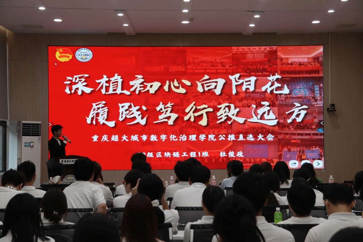 为选拔优秀学生骨干,激发团学工作新活力,2025年6月16日,重庆超大城市数字化治理学院在A校区9106教室成功举办学生兼职团总支副书记公推直选大会。出席本次活动的领导和嘉宾有:重庆超大城市数字化治理学院党总支书记任伟,团总支书记段瑞,校团委干事樊林鑫,党总支组织委员陈悦,学生一支部书记朱作佳,学生二支部书记苏姝,重庆对外经贸学院学生兼职团委副书记胡巧琳,各辅导员老师以及学生代表们。