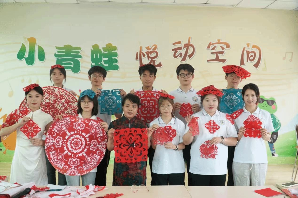 活动以 “讲 - 教 - 做” 沉浸式体验为核心,设置三大非遗技艺实践环节:庆阳香包制作环节,传承人张煜瑶老师讲解香囊千年文化与中草药智慧,指导学员裁剪缝制囊袋、填充药草;庆阳剪纸体验环节,传承人张锐利老师传授剪纸文化内涵及 “对折剪”“刀刻” 核心技法,引导学员动手实践;川渝脸谱绘制环节,传承团队员阐释脸谱艺术,指导学员勾线填色创作川剧脸谱。学员均完成香包、剪纸、脸谱三类作品,活动尾声,全体参与者手持作品,伴《唱脸谱》欢快旋律齐声合唱,这份对非遗的热爱与地域文化的交融,让活动更添温情。